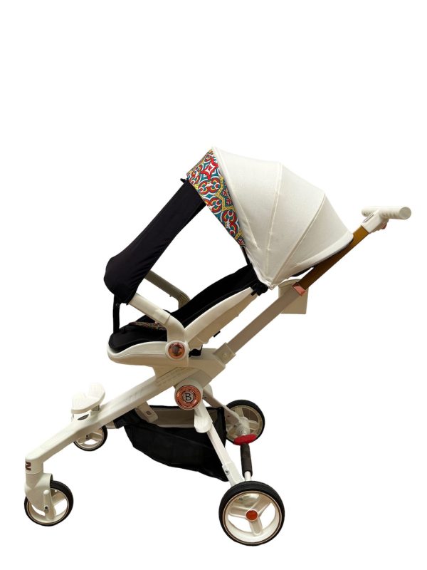 Caruciorul are trei poziții diferite de înclinare a spătarului, pentru a permite bebelușului să se odihnească sau să stea în poziție semirezemată.