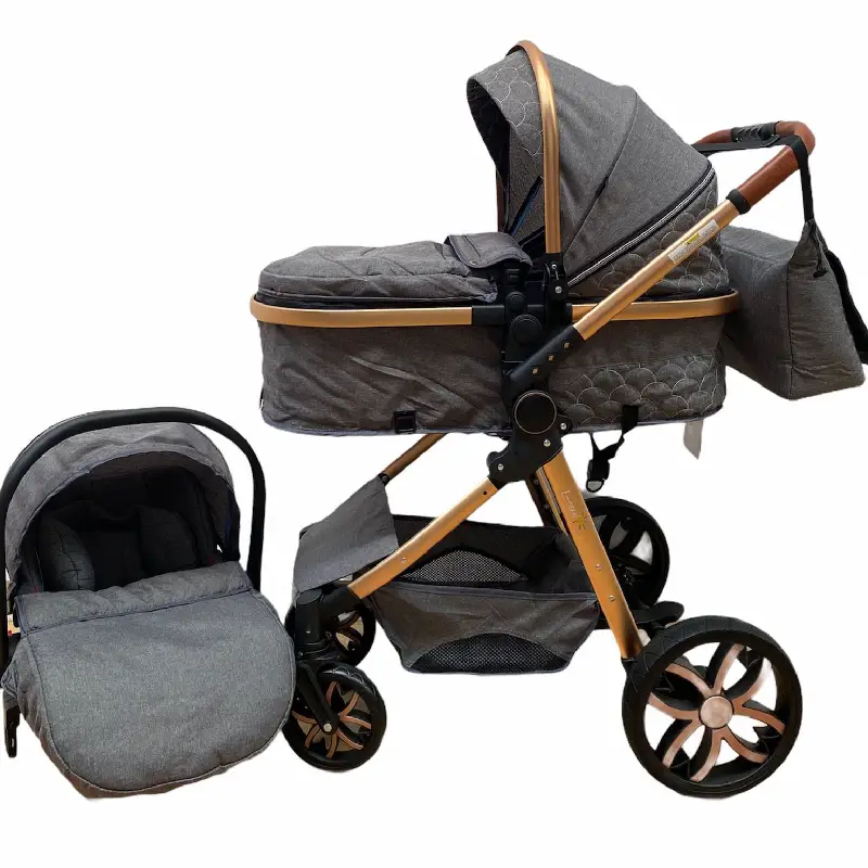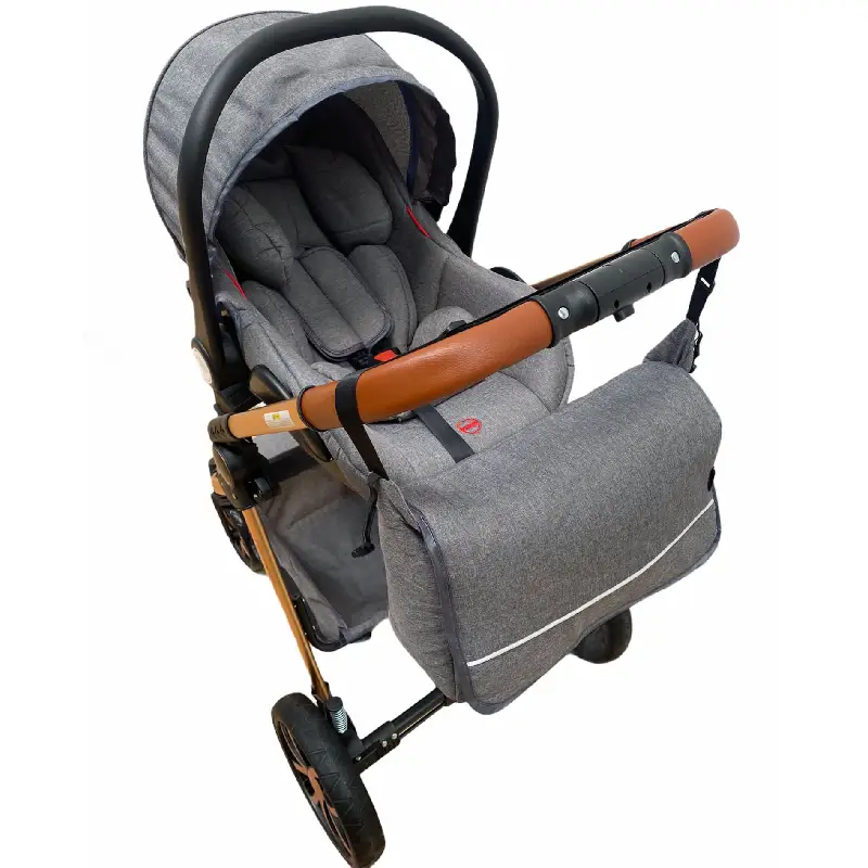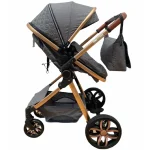 - Include compartiment de depozitare pentru a putea transporta ușor și organizat diferite obiecte necesare pentru copil, cum ar fi scutece, haine de schimb, jucării sau sticle cu apă,precum si o geanta.