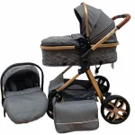 Carucior Pliabil Reversibil cu Scoica si Landou Gri este proiectat pentru a oferi confort, siguranță și funcționalitate atât copilului, cât și părinților.