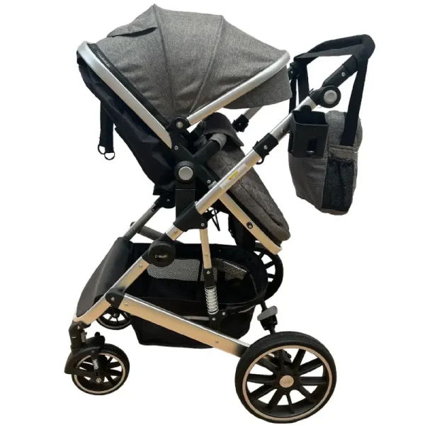 - Include compartiment de depozitare pentru a putea transporta ușor și organizat diferite obiecte necesare pentru copil, cum ar fi scutece, haine de schimb, jucării sau sticle cu apă,precum si o geanta.