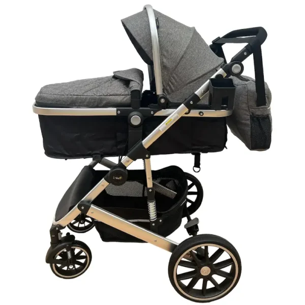 Carucior Pliabil Reversibil cu Suspensii si Landou Gri este proiectat pentru a oferi confort, siguranță și funcționalitate atât copilului, cât și părinților.
