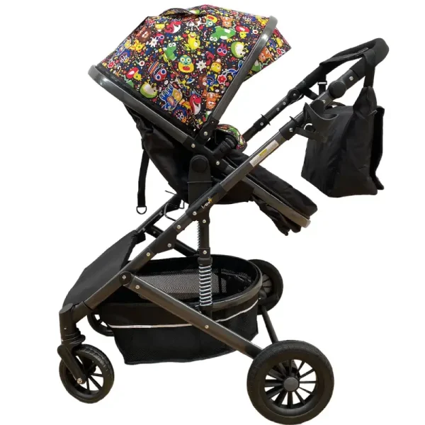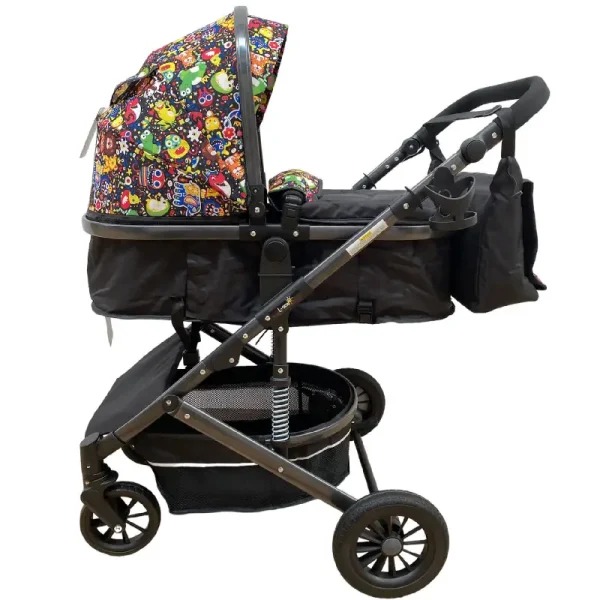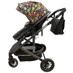 - Include compartiment de depozitare pentru a putea transporta ușor și organizat diferite obiecte necesare pentru copil, cum ar fi scutece, haine de schimb, jucării sau sticle cu apă,precum si o geanta.