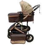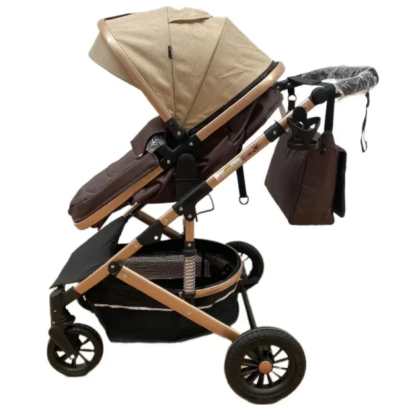 - Include compartiment de depozitare pentru a putea transporta ușor și organizat diferite obiecte necesare pentru copil, cum ar fi scutece, haine de schimb, jucării sau sticle cu apă,precum si o geanta.