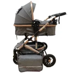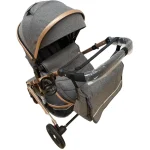 - Include compartiment de depozitare pentru a putea transporta ușor și organizat diferite obiecte necesare pentru copil, cum ar fi scutece, haine de schimb, jucării sau sticle cu apă,precum si o geanta.