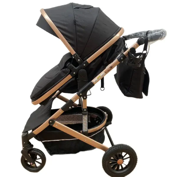 - Include compartiment de depozitare pentru a putea transporta ușor și organizat diferite obiecte necesare pentru copil, cum ar fi scutece, haine de schimb, jucării sau sticle cu apă,precum si o geanta.