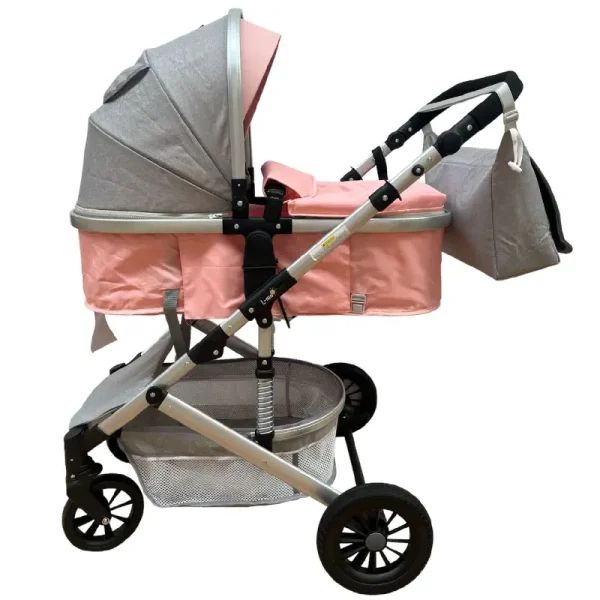 - Include compartiment de depozitare pentru a putea transporta ușor și organizat diferite obiecte necesare pentru copil, cum ar fi scutece, haine de schimb, jucării sau sticle cu apă,precum si o geanta.