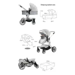 - Include compartiment de depozitare pentru a putea transporta ușor și organizat diferite obiecte necesare pentru copil, cum ar fi scutece, haine de schimb, jucării sau sticle cu apă,precum si o geanta.