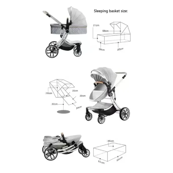 Carucior Reversibil Pliabil Luxury cu Landou Gri este proiectat pentru a oferi confort, siguranță și funcționalitate atât copilului, cât și părinților.