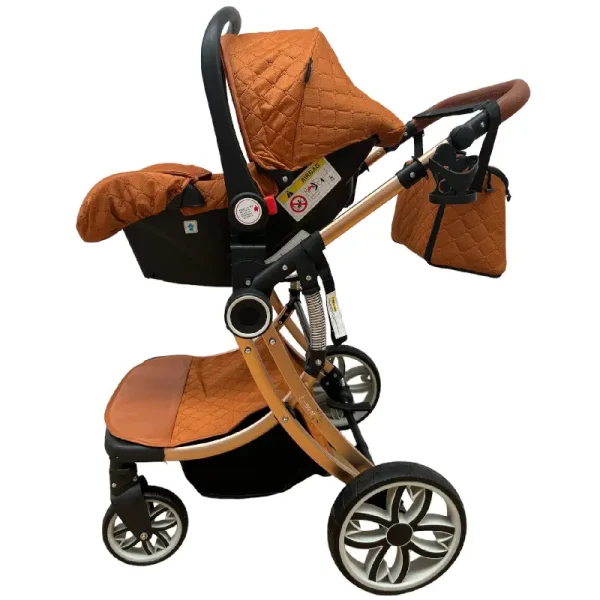Carucior Reversibil Pliabil Luxury cu Landou Orange este proiectat pentru a oferi confort, siguranță și funcționalitate atât copilului, cât și părinților.