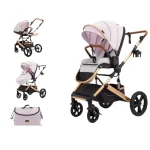 Cărucior Transformabil 2 în 1 Premium Rose Gold – Cadru Aluminiu, Poziții Multiple, Stil si Siguranță pentru Bebe