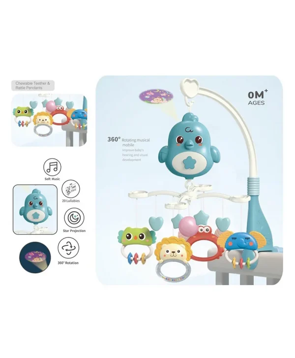 Carusel Muzical Cu Proiector pentru Patut ii ajuta pe cei mici sa isi dezvolte capacitatile vizuale si auditive. Dar si de coordonare,perceptie spatiala si motricitate fina atunci cand incep sa se joace cu jucariile atasate.