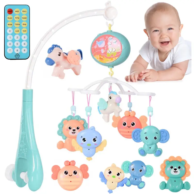 Carusel Muzical cu Telecomanda pentru Patut Bebe – Liniște și Distracție pentru Bebelușul Tău!