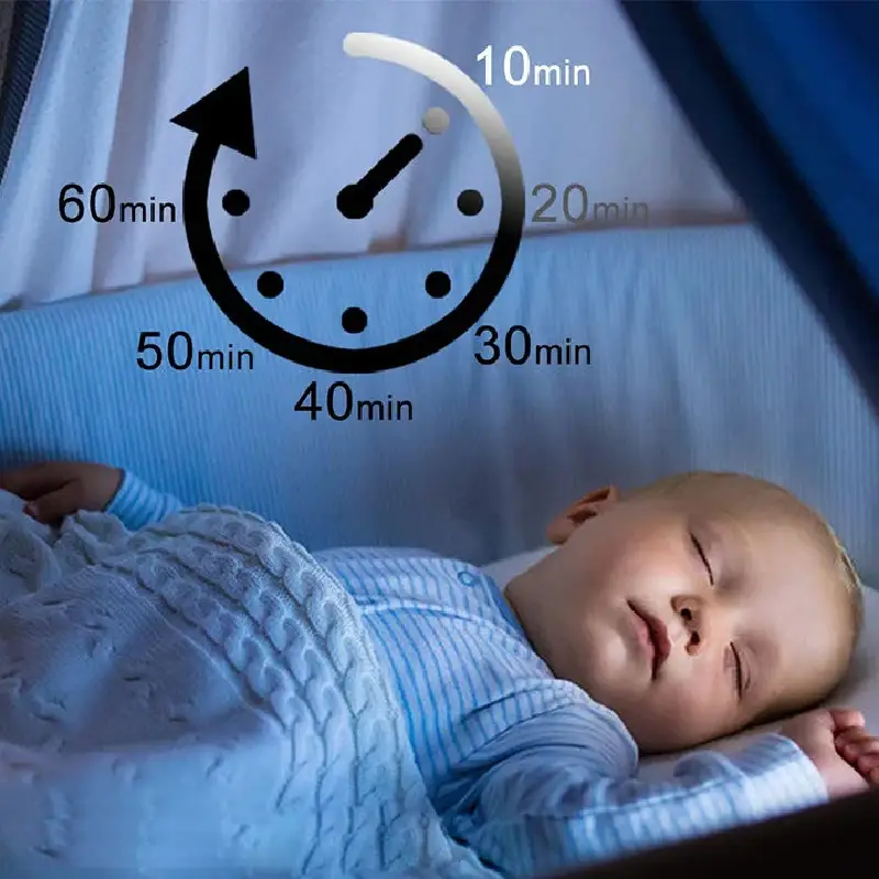 - Temporizator reglabil – Funcția de temporizare permite setarea caruselului pentru a se opri automat, economisind baterie și oferindu-i bebelușului un somn neîntrerupt.