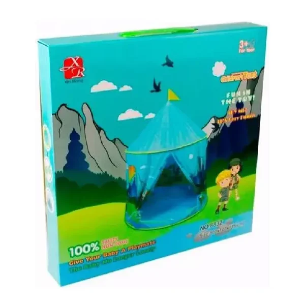 Cortul are un design vibrant, cu temă de aventură, în nuanțe de albastru, completat de imagini care încurajează imaginația.