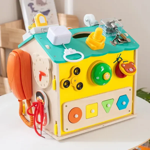 Casuta cu Activitati Educative Busy Board Montessori este un centru de activitati multifunctional foarte util si complex pentru educatia copiilor.