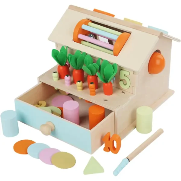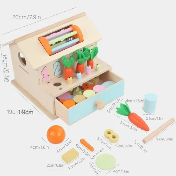 Această căsuță Montessori multifuncțională nu e doar o jucărie, ci un întreg univers care încurajează curiozitatea, dezvoltarea inteligenței și bucuria explorării.