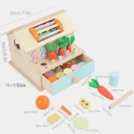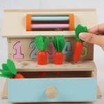 Copilul scoate morcovii și îi replantează în locul corect, învățând despre dimensiuni și coordonare.