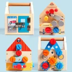 Transformă fiecare joacă într-o aventură a cunoașterii cu această căsuță educativă Montessori din lemn, echipată cu scule colorate, piulițe, șuruburi, roți dințate și elemente interactive care stimulează dezvoltarea cognitivă, motrică și creativă a copilului tău!