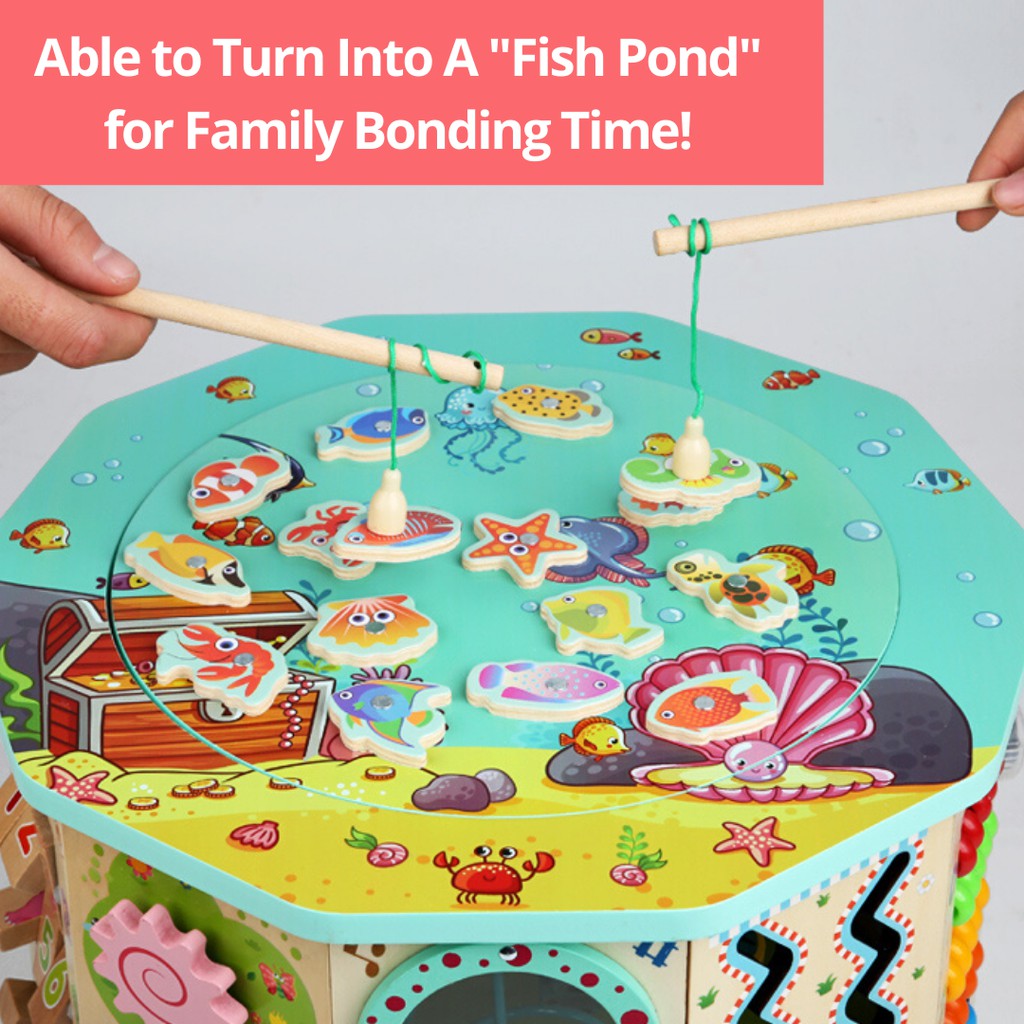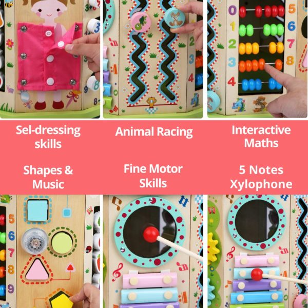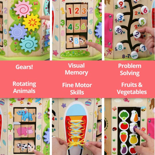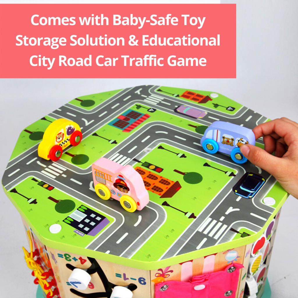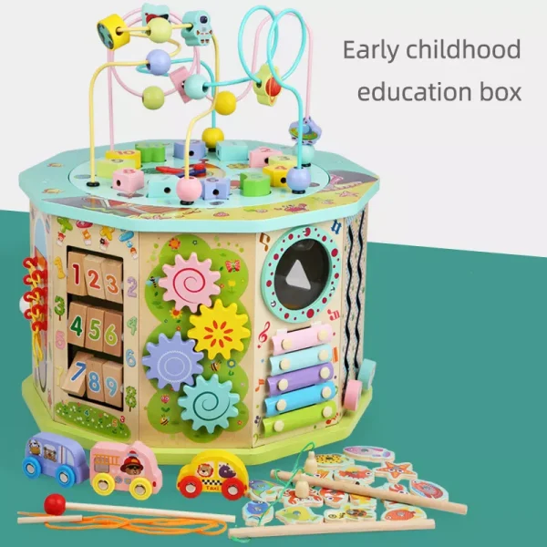 Centru activitati multifunctional este una din primele jucarii din lemn pe care cei mici le pot folosi pentru joaca,stimularea abilitatilor,invatare.