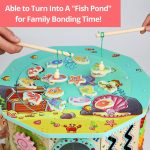 Partea de sus a centrului de activitati este detasabila,iar interiorul poate fi folosit ca si cutie de depozitare.