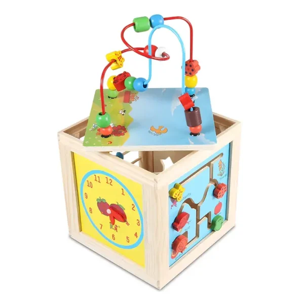 - Jocuri multiple într-un singur cub: Include un labirint de mărgele, un sortator de forme geometrice, trasee de animale și multe alte activități captivante.
