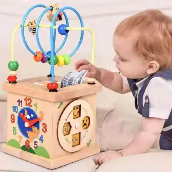 Centru Educativ cu Activități Jucarie din Lemn – O jucărie educațională interactivă ce stimulează abilitățile motorii și cognitive.