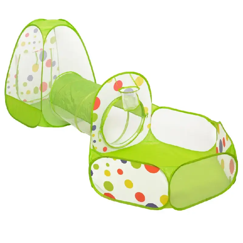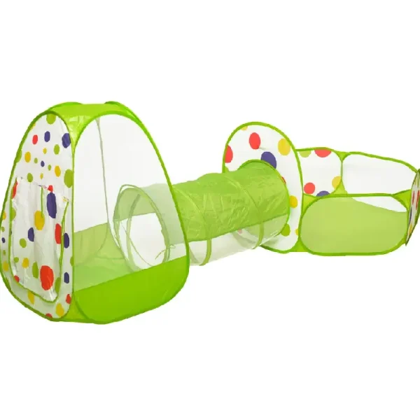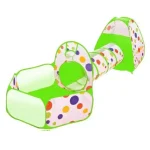 Centru de joaca contine un tunel,o piscina cu cos de baschet si un cort tip casuta.