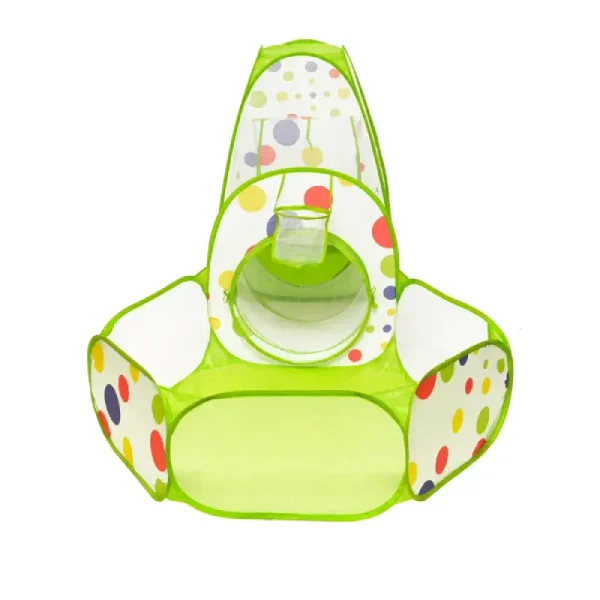 Centru de joaca contine o piscina,un tunel si o casuta si este ideal pentru a se juca cu diverse jucarii sau sa il foloseasca pe post de ascunzatoare.