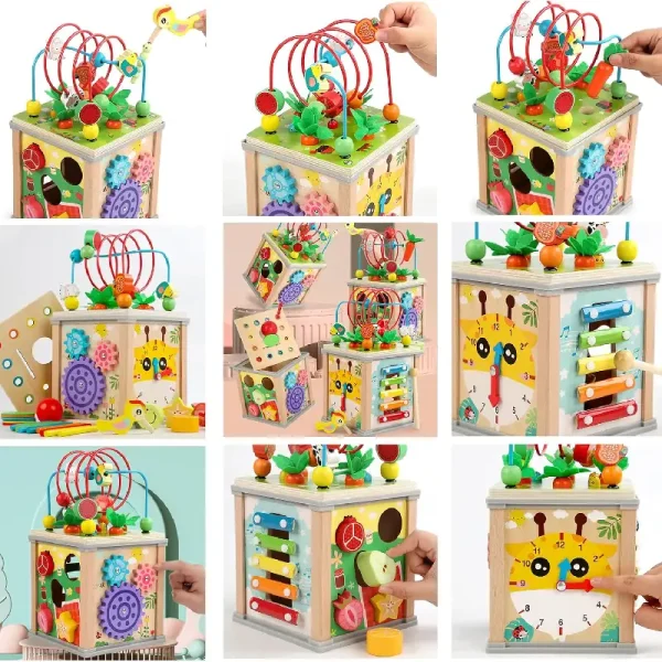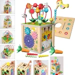 Centru Montessori Lemn cu Activitati 10 in 1- Jucărie Educativă Multifuncțională pentru Dezvoltarea Copilului tău!