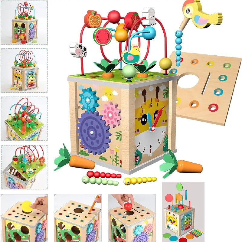 Centru de activitati multifuncțional permite copiilor tăi să joace 10 jocuri într-o jucărie: joc de recoltare morcovi, pescuit magnetic viermisori, xilofon, mecanism cu roti zimtate, sortator,puzzle fructe, ceas analog de învățare si labirint 3D,sortare betisoare si discuri,etc.