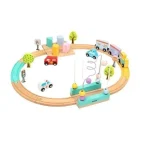 Acest set atractiv include o pistă circulară din lemn pe care rulează un trenuleț simpatic, vehicule precum ambulanța și mașina de poliție, dar și diverse forme geometrice care pot fi aranjate și potrivite în zona specială de sortare.