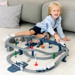 Circuit Tren Electric cu Accesorii 103 Piese DIY ofera posibilitatea copiilor sa isi construiasca singuri traseul si spatiile adiacente.
