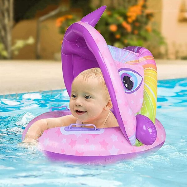 Colacul cu parasolar detasabil ii ajuta pe bebelusi sa se relaxeze si sa se bucure experienta contactului cu apa.