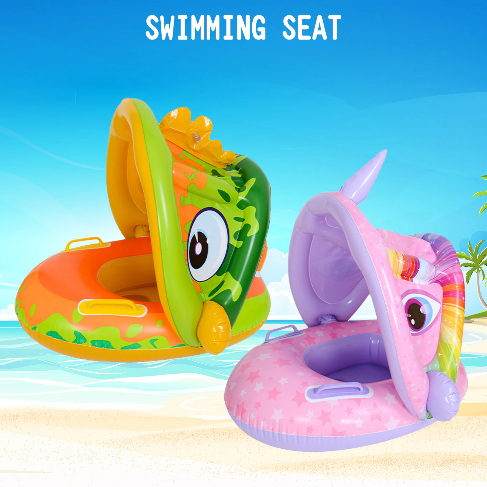 Începe aventura acvatică în siguranță cu Colac cu Manere si Parasolar Detasabil pentru Inot Bebe!