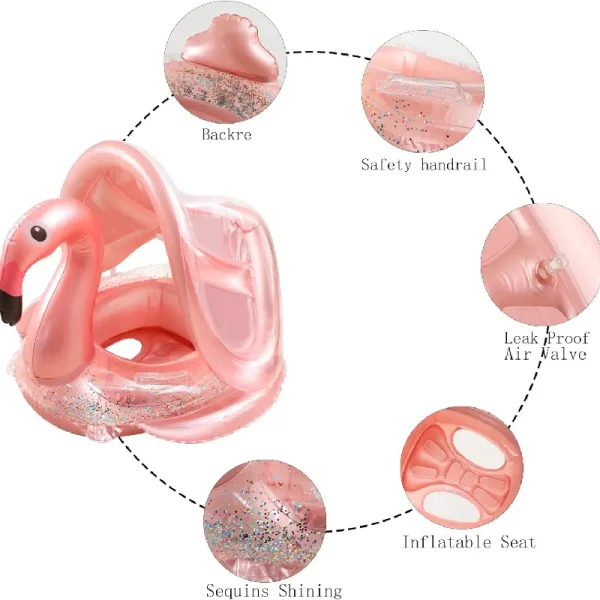 Colac Flamingo cu Parasolar pentru Bebelusi