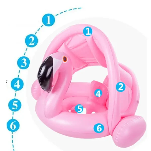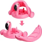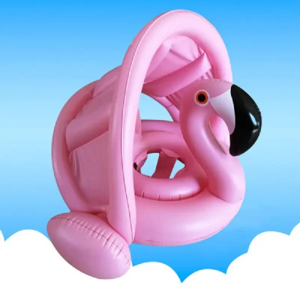 Colac Flamingo Roz cu Parasolar pentru Bebelusi este accesoriul perfect pentru zilele insorite de la piscina sau de la mare.