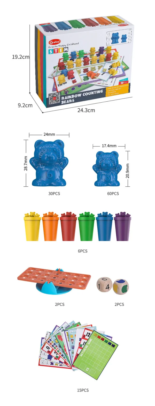Copiilor le va plăcea să numere, să sorteze, să se potrivească și să se joace cu acești urși drăguți.