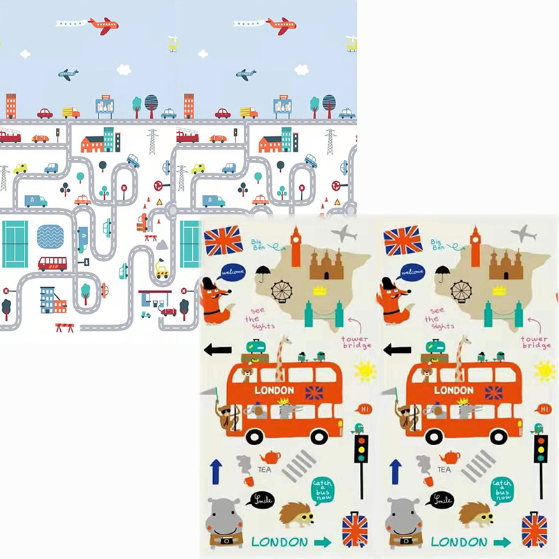 Covoras de joaca educativ cu doua fete,material impermeabil XPE ,imprimat,de dimensiuni mari : 180 cm x 200 cm .