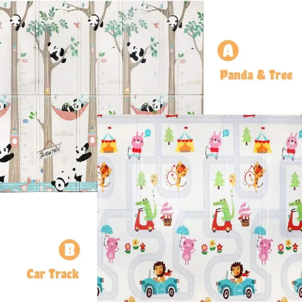 Covor Bebelusi Antiderapant Panda si Traseu Masinute – Moale, Sigur, Impermeabil și Pliabil