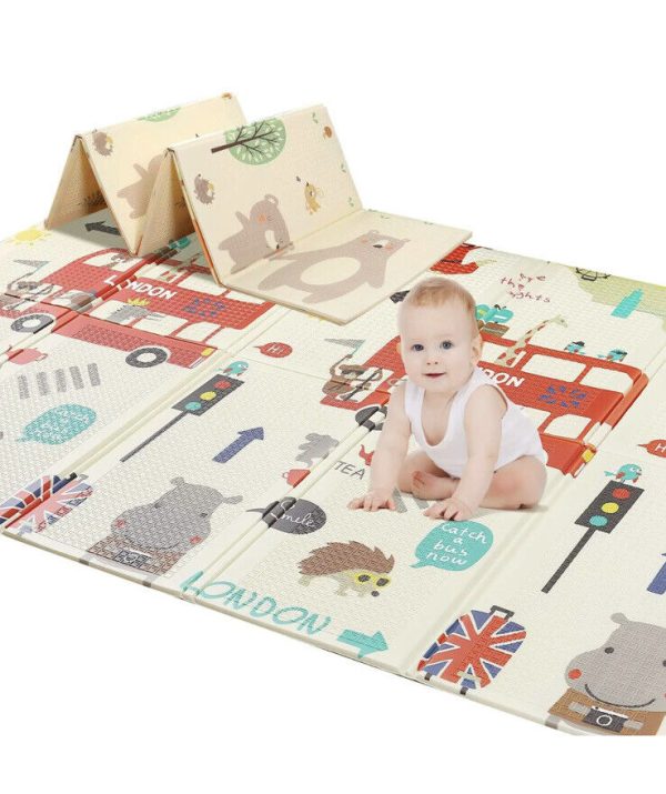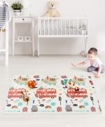 Covor de Joaca pentru Copii,Termic Pliabil si Reversibil London si Ursuletii – are 5 pliseuri,doua fete cu imprimeuri diferite si izolat termic si anti-soc.