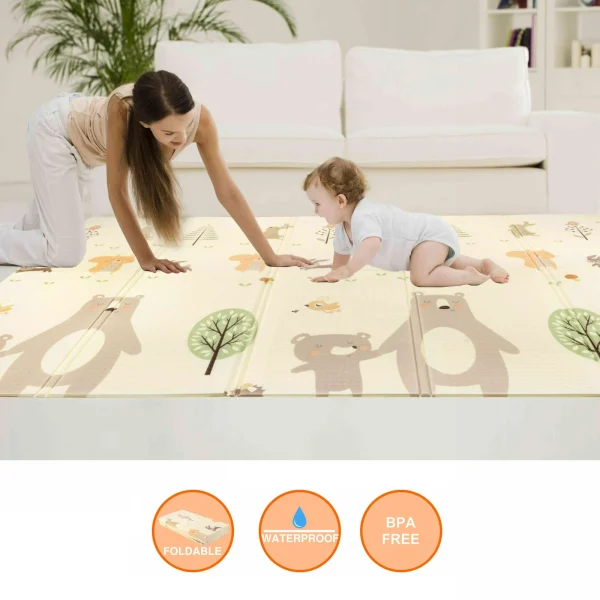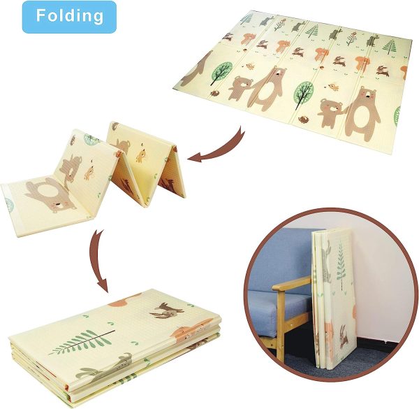 - Pliabil și portabil: Un covor de joacă pliabil poate fi ușor de transportat și depozitat, permițându-vă să-l mutați în diferite camere sau să-l luați cu dumneavoastră în călătorii sau vizite la prieteni și familie.