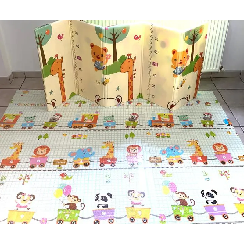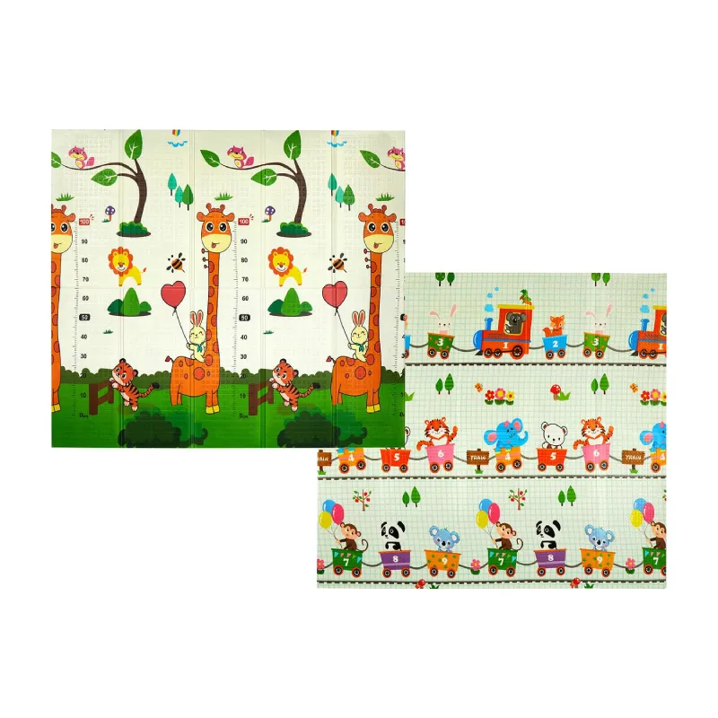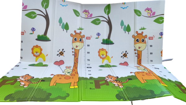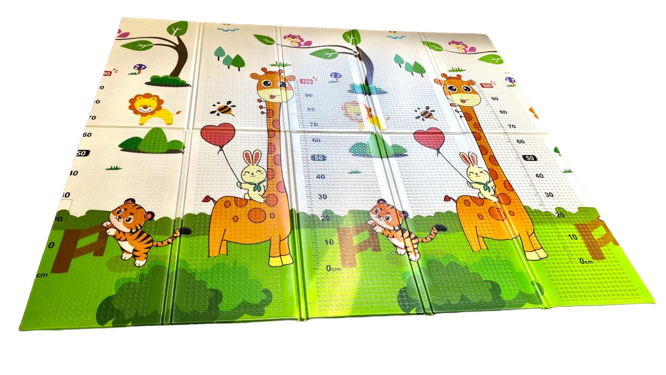 - Covorul cu girafa si trenulet poate fi pliat, ceea ce il face ușor de transportat și depozitat. Aceasta este o caracteristică convenabilă pentru părinți, deoarece poate fi utilizat acasă sau luat cu ei în călătorii și excursii.