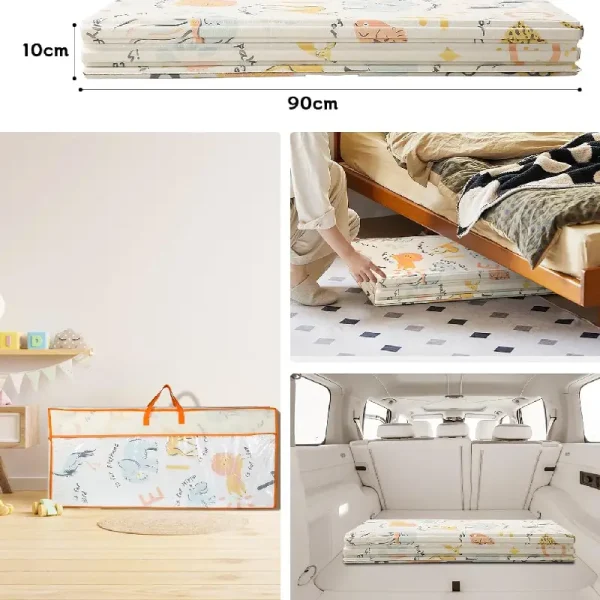 Covorul pliabil are doua fete,material impermeabil XPE ,imprimat,de dimensiuni mari : 180 cm x 200 cm .