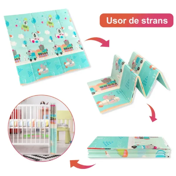 Covor de Joacă Pliabil Spuma XPE Animalute si Masinute – Aventură pentru Bebe cu Trenuletul Animalutelor