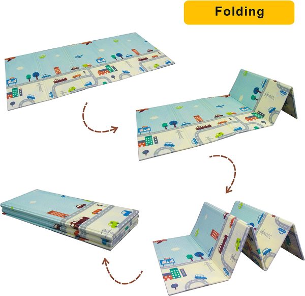 Covor Joaca Pliabil Termoizolant Orasel 150x200cm – are 5 pliseuri,doua fete cu imprimeuri diferite si izolat termic si anti-soc.
