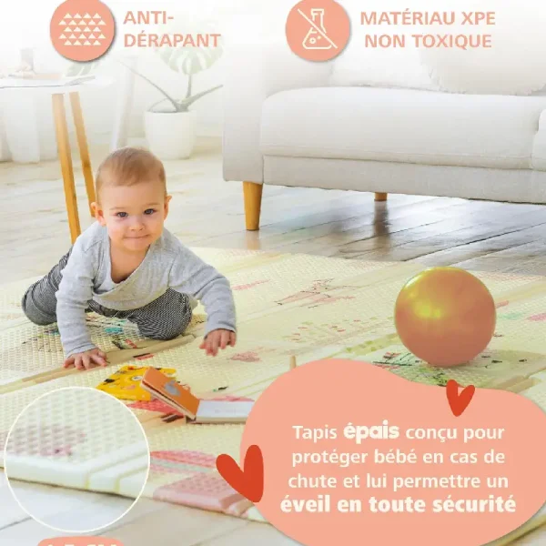 Este impermeabil și ușor de curățat, perfect pentru joacă, târâș, primii pași sau activități educative.
