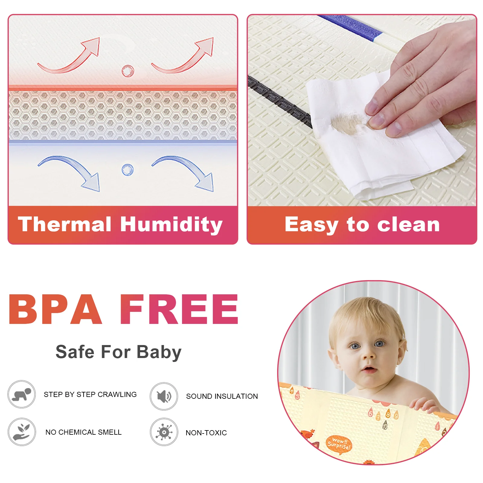 Materialul termoizolant asigură o izolație termică eficientă, permițând copiilor să se joace confortabil pe podea în orice moment al anului. Este moale la atingere, oferind un confort sporit în timpul activităților de joacă sau relaxare.