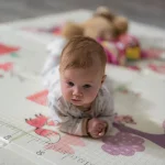 Esti linistit că bebelușul se joacă pe o suprafață sigură, fără pericole.