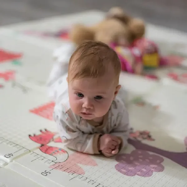 Este nu doar o suprafață de joacă, ci și un stimulent vizual blând, ideal pentru bebeluși care descoperă lumea pas cu pas.