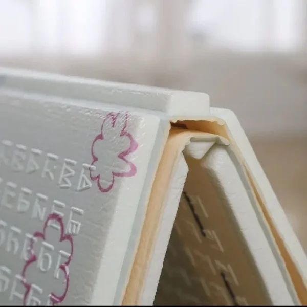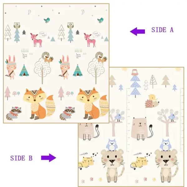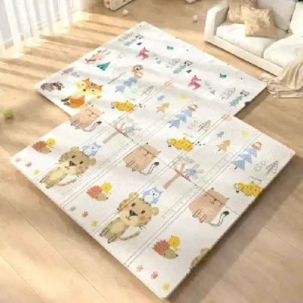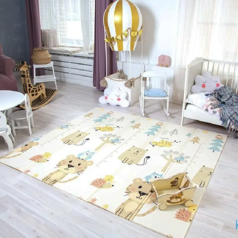 - Covorul poate fi pliat, ceea ce il face ușor de transportat și depozitat. Aceasta este o caracteristică convenabilă pentru părinți, deoarece poate fi utilizat acasă sau luat cu ei în călătorii și excursii.